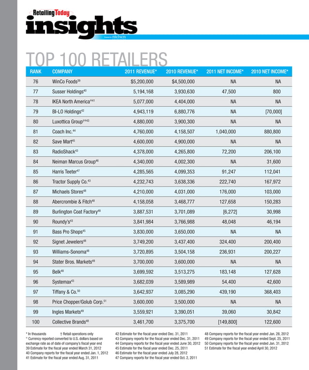 Top 100 Retailers and Categories , The nrf top 100 retailers list ranks the industry’s largest companies according to sales.